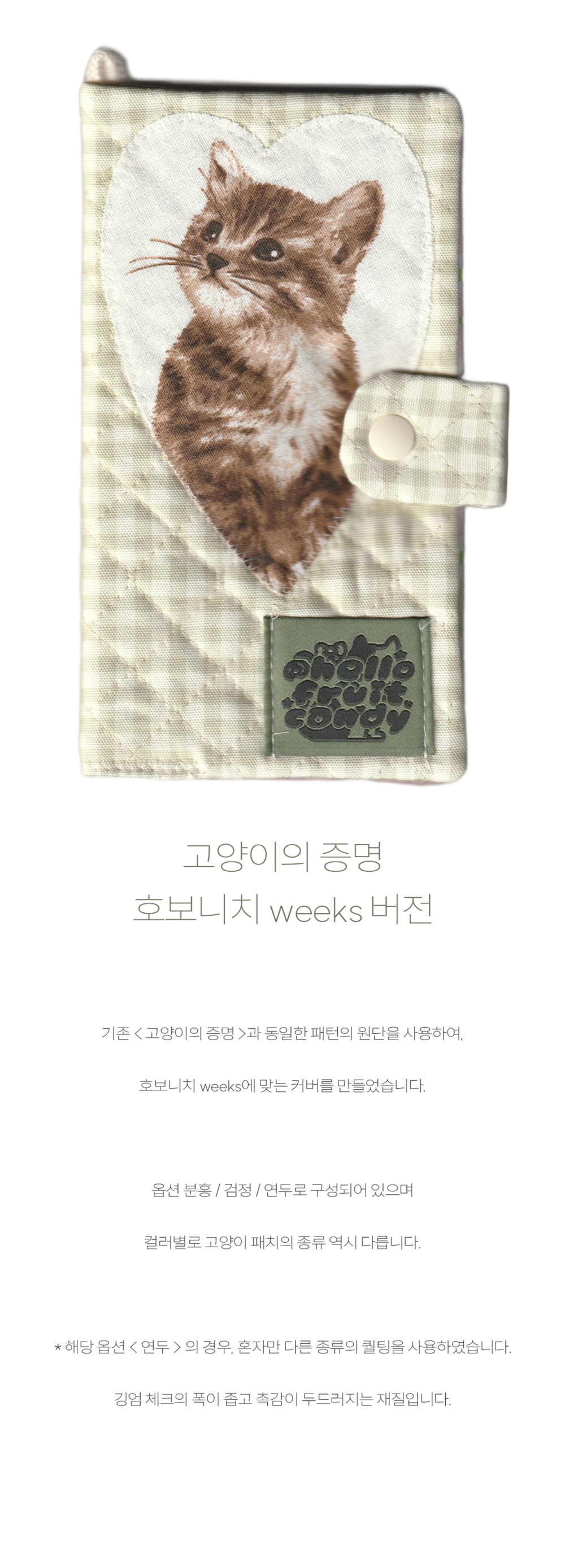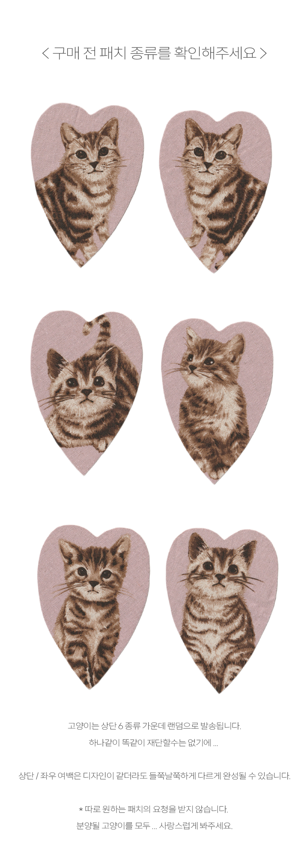 ✉ 사이즈와 랜덤 부착되는 고양이 패치는 뉴 컬러 안내 하단부터 이어지는 기존 인포에서 확인 가능합니다.