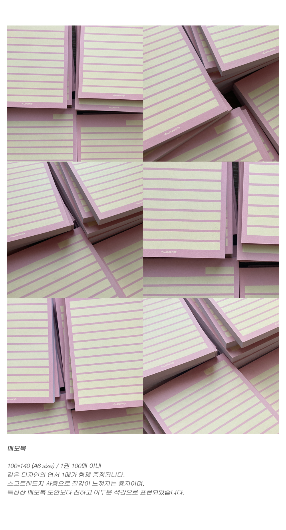 A6사이즈의 메모북입니다. 필사하거나 다이어리를 꾸미고 일기 쓰기에 좋은 크기입니다.
