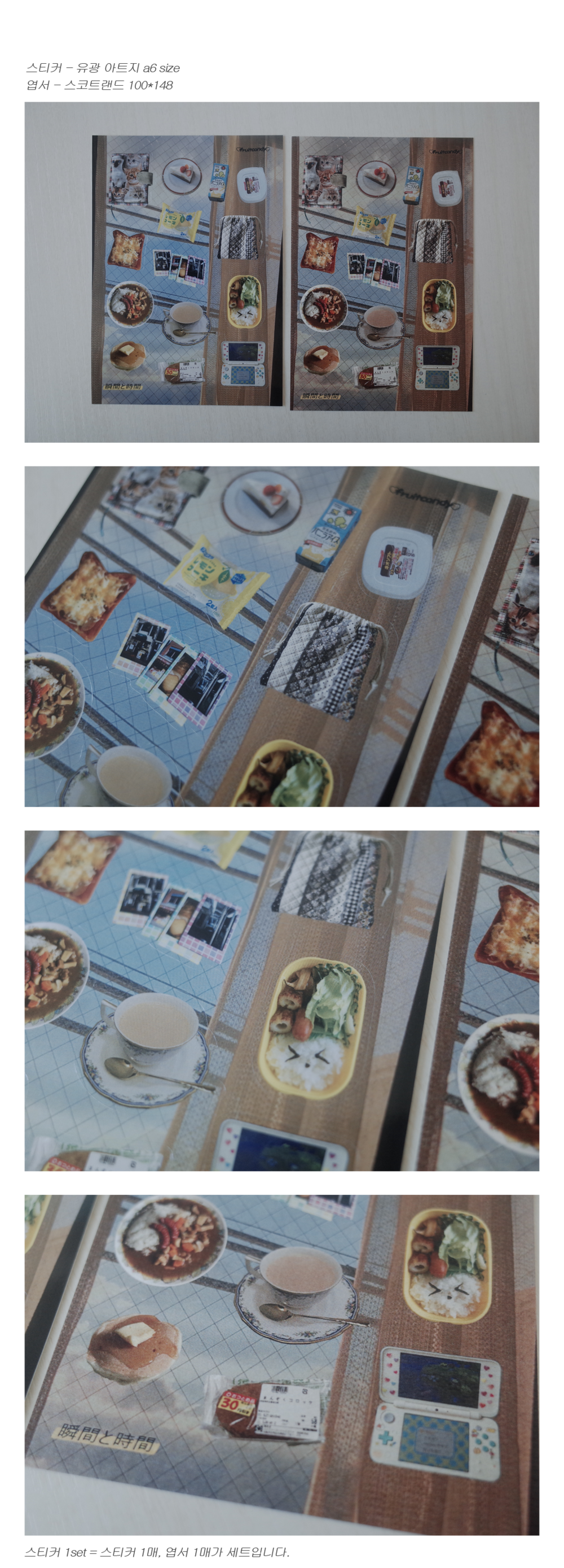 직접 촬영한 사진을 사용해 만든 칼선 스티커입니다. 같은 디자인의 엽서 1매가 세트인 상품으로, 노트 등의 표지를 꾸미거나 사진처럼 보관하기에도 좋은 스티커 세트 상품입니다.
