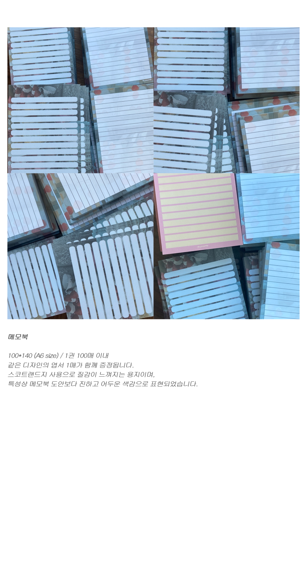 A6사이즈의 메모북입니다. 필사하거나 다이어리를 꾸미고 일기 쓰기에 좋은 크기입니다.